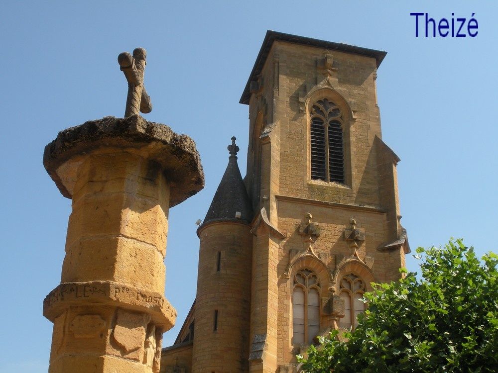 J'ai bien aussi aimé le village de Ternand, qui sur la hauteur faisait la sieste autour des ruines médiévales de son château, et aussi Theizé dont la place est superbe, la nouvelle église étant bien dans le style ancien, d'un beau jaune abricot, tandis que le sanctuaire antique et le château proche, dit de Rochebonne, méritent le détour.