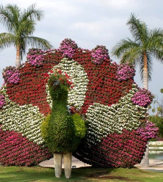 Avant de poursuivre la visite thématique des "Jardines de México" je vous propose une petite pause, mais je vous adresse quand même quatre images consacrées aux oiseaux emblématiques du parc, les paons magnifiques, réalisées entièrement en fleurs variées, qu'ils fassent la roue ou non.